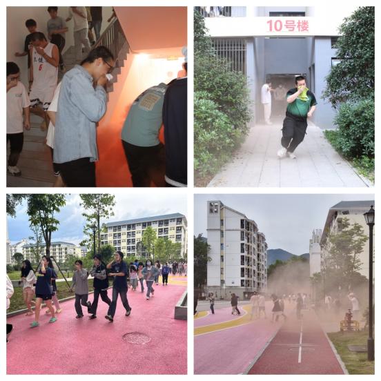 下午3:50,演練正式開始。為真實(shí)還原地震火災(zāi)的場(chǎng)景,工作人員在每個(gè)宿舍樓道點(diǎn)放演練用煙霧彈,模擬災(zāi)害現(xiàn)場(chǎng)煙塵彌漫、能見度低的惡劣環(huán)境,宿管員立即打開宿舍所有通道門禁,方便學(xué)生疏散。