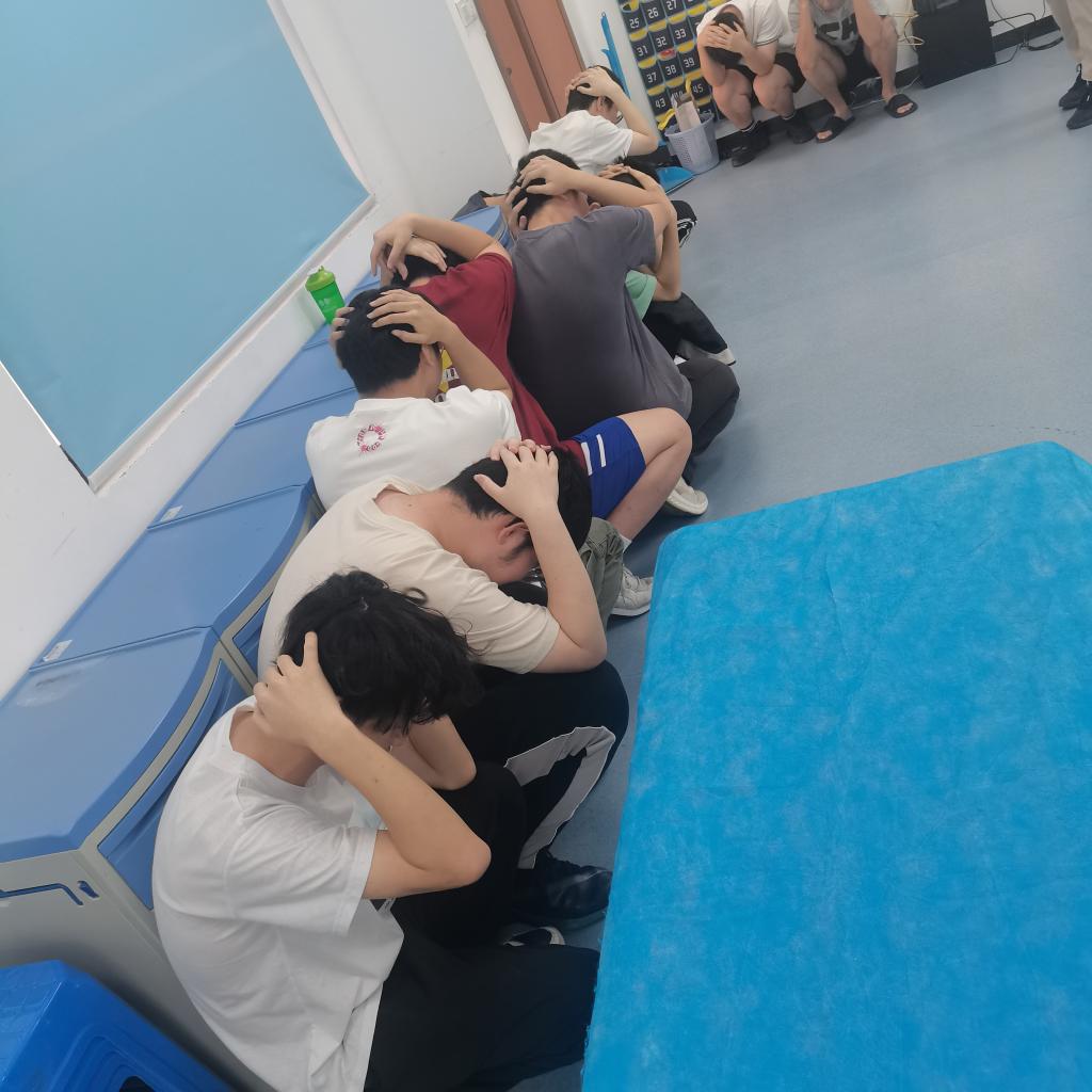 二是應(yīng)急逃生演練(消防、地震)。安全工作處林澤文老師詳細(xì)介紹消防器材使用、疏散信號(hào)、疏散路線、疏散順序等注意事項(xiàng),并強(qiáng)調(diào)在疏散過(guò)程中切勿擁擠、推搡導(dǎo)致踩踏事件發(fā)生。演練工作組接到演練指令后,燃放煙霧,迅速開啟實(shí)訓(xùn)室的安全出口大門,組織學(xué)生彎腰、捂口鼻、無(wú)人喧嘩、迅速有序地撤出實(shí)訓(xùn)室,按照指定路線,從樓梯通道內(nèi)側(cè)撤離,到空曠位置集合并清點(diǎn)人數(shù)。