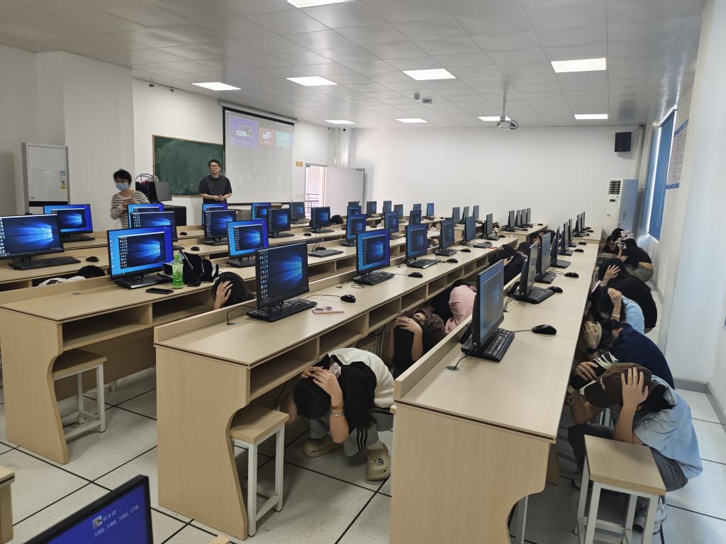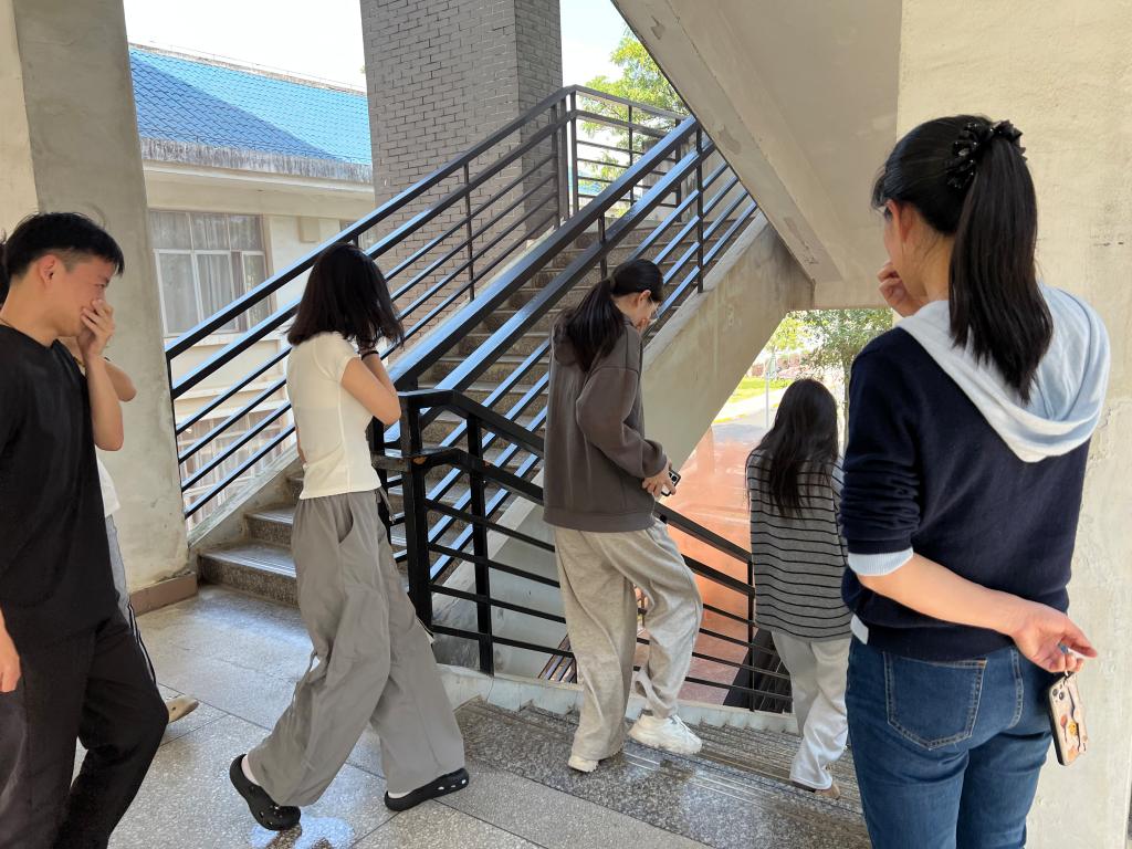 第二部分應急逃生演練(消防、地震)。演練開啟前安全工作處林澤文先詳細介紹消防器材的使用、演練程序、疏散信號、疏散路線、疏散順序等注意事項,并強調在疏散過程中切勿擁擠、推搡導致踩踏事件發(fā)生。演練工作組接到演練指令后,燃放煙霧,平靜的醫(yī)工學院樓突然黃煙四起、警報鈴響,各位老師迅速到達指定崗位,學生們也隨之做出反應,在現場人員的指揮下,學生們紛紛用手、濕紙巾等捂住口鼻,彎著腰從預定的逃生路線進行撤離,撤退中所有同學緊靠右行,撤退過程井然有序,參加本次演練師生全部安全撤離到指定區(qū)域。