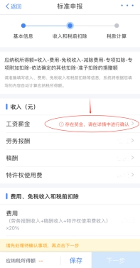 系統(tǒng)根據(jù)填報的信息,自動計算出“應(yīng)補稅額”或“應(yīng)退稅額”,顯示在左下方。