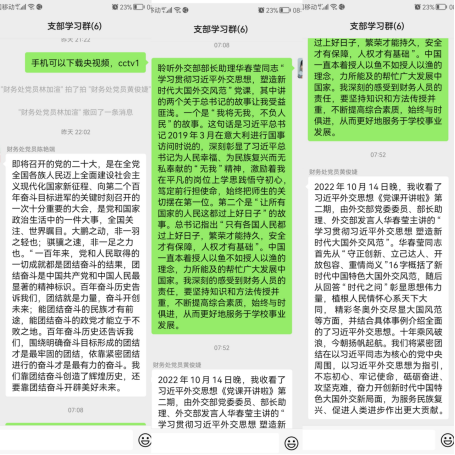 在喜迎黨的二十大勝利召開之際,為深入學(xué)習(xí)貫徹習(xí)近平新時(shí)代中國特色社會(huì)主義思想,財(cái)務(wù)處全體黨員10月15日晚在家中觀看了CCTV1《黨課開講啦》節(jié)目中,外交部部長助理華春瑩同志講授的《學(xué)習(xí)貫徹習(xí)近平外交思想,塑造新時(shí)代大國外交風(fēng)范》專題黨課。