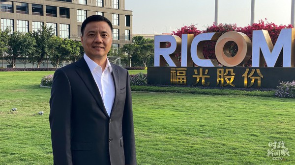 △福光公司董事長(zhǎng)何文波當(dāng)天負(fù)責(zé)為總書記做介紹。(總臺(tái)央視記者李輝拍攝)