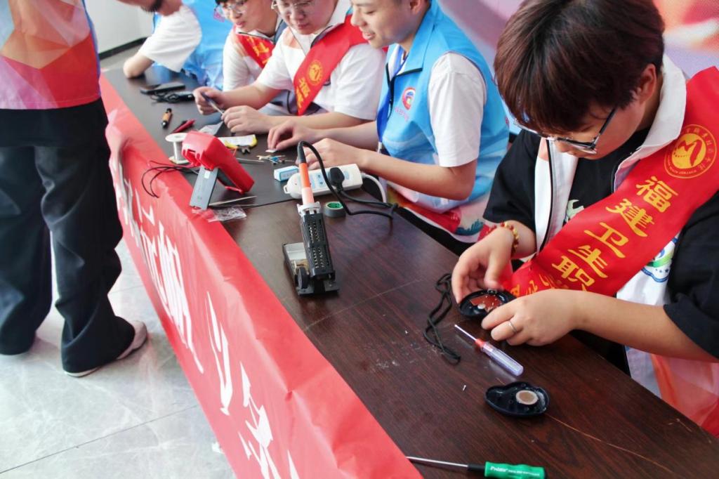 為弘揚(yáng)“勞動(dòng)光榮、技能寶貴、創(chuàng)造偉大”的時(shí)代風(fēng)尚,積極響應(yīng)黨的二十大號(hào)召,充分展示我校辦學(xué)特色和成果、發(fā)揮我校醫(yī)學(xué)職業(yè)技能優(yōu)勢(shì),體現(xiàn)高校教師黨員服務(wù)社會(huì)的作用,質(zhì)量管理辦公室黨支部聯(lián)合醫(yī)學(xué)技術(shù)與工程學(xué)院第二黨支部進(jìn)社區(qū)開展家電免費(fèi)維修等職教周活動(dòng)。該活動(dòng)于2024年5月16日在閩侯濱江社區(qū)舉行,活動(dòng)內(nèi)容包括:醫(yī)療家用電子儀器免費(fèi)維修活動(dòng)、無償獻(xiàn)血宣教、糖尿病篩查活動(dòng),乙肝表面抗原篩查活動(dòng)、兒童青少年近視防控篩查活動(dòng)、口腔護(hù)理咨詢、耳穴療法等。