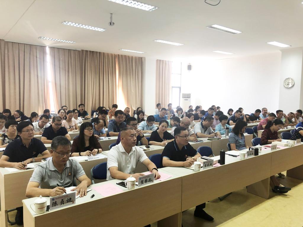 9月25日下午,黨委副書(shū)記李美華主持召開(kāi)“不忘初心、牢記使命”主題教育黨支部書(shū)記輪訓(xùn)班開(kāi)班式暨黨委中心組學(xué)習(xí)(擴(kuò)大)會(huì)議,開(kāi)展“不忘初心、牢記使命”主題教育第四專(zhuān)題“牢記為民使命,強(qiáng)化作風(fēng)建設(shè)”第二場(chǎng)研討。參加會(huì)議的有院領(lǐng)導(dǎo)、各黨總支書(shū)記及黨支部書(shū)記、院直機(jī)關(guān)黨總支全體黨員共100余人。省委教育工委省委教育工委巡回指導(dǎo)二組成員、省文化稽查總隊(duì)副調(diào)研員笪章彪同志蒞臨指導(dǎo)。