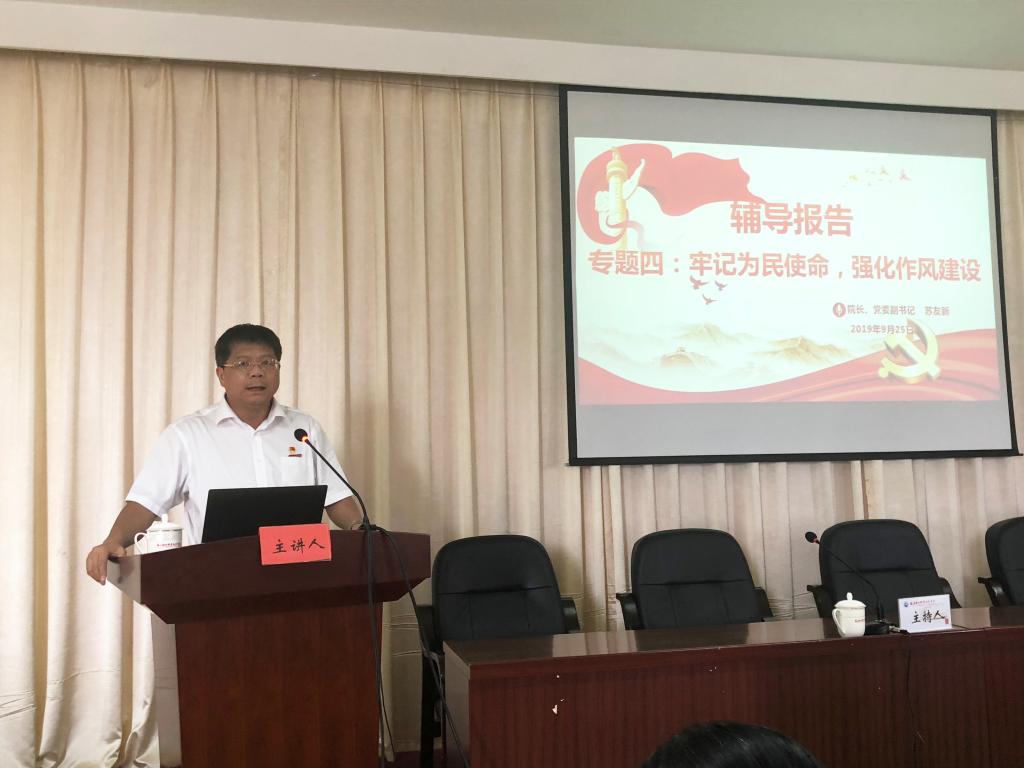 會(huì)上,院長(zhǎng)、黨委副書(shū)記蘇友新同志以《專(zhuān)題四:牢記為民使命,強(qiáng)化作風(fēng)建設(shè)》輔導(dǎo)報(bào)告拉開(kāi)主題教育黨支部書(shū)記輪訓(xùn)班的序幕。他依次從“什么是黨的作風(fēng)”什么是新時(shí)代黨的作風(fēng)建設(shè)”“為什么我黨要加強(qiáng)黨的作風(fēng)建設(shè)”和“領(lǐng)導(dǎo)干部要以身作則爭(zhēng)當(dāng)作風(fēng)建設(shè)的模范”四個(gè)方面,結(jié)合實(shí)際進(jìn)行輔導(dǎo)講解。他強(qiáng)調(diào),全體黨員要勤于深入,精于務(wù)實(shí);要敢于負(fù)責(zé),勇于創(chuàng)新;要嚴(yán)以律己,善于協(xié)調(diào);要樂(lè)于吃苦,甘于奉獻(xiàn);要內(nèi)化于心、外化于行。要真正把學(xué)習(xí)轉(zhuǎn)化為推動(dòng)學(xué)院示范校建設(shè)、雙高計(jì)劃項(xiàng)目申報(bào)、文明校園創(chuàng)建、智慧校園建設(shè)、美麗校園建設(shè)和平安校園建設(shè)上來(lái),轉(zhuǎn)化到抓各項(xiàng)工作落實(shí)的行動(dòng)上來(lái),扎扎實(shí)實(shí)為師生解難題辦實(shí)事,促進(jìn)學(xué)院健康發(fā)展。