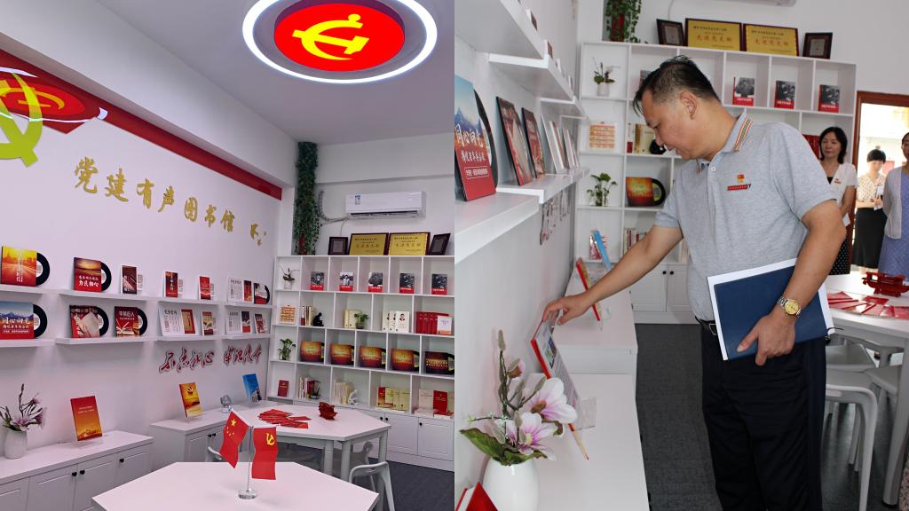 會前,與會人員參觀護理學(xué)院“雙帶頭人”工作室“有聲黨建”建設(shè)成果,進行現(xiàn)場交流。