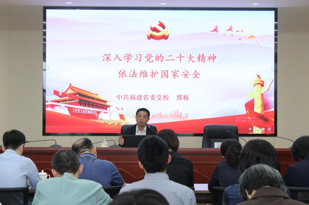 為深入學習宣傳貫徹黨的二十大精神,4月20日下午,我校舉行黨的二十大精神專題培訓第五次集中學習,邀請福建省委黨校法學教研部邢棟博士作輔導報告。校領導、中層干部、專職組織員和師生黨支部書記等80余人參加培訓。