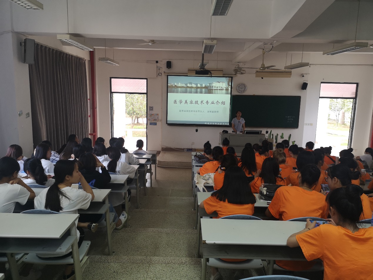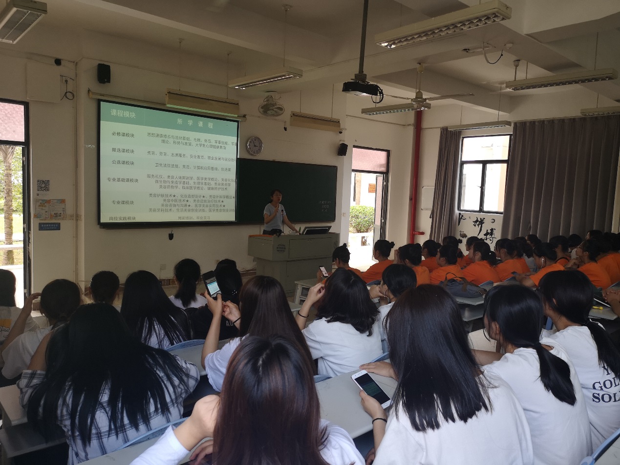 2019年10月17日下午,為了提升高職一年級(jí)新生對自己所學(xué)專業(yè)的了解,我校醫(yī)學(xué)美容技術(shù)專業(yè)學(xué)科帶頭人吳明老師給2019級(jí)醫(yī)學(xué)美容技術(shù)專業(yè)新生進(jìn)行專業(yè)介紹,同時(shí)參會(huì)的還有醫(yī)學(xué)美容與中醫(yī)養(yǎng)生教研室主任楊笑老師和專任教師李芳琴老師。吳明老師主要從專業(yè)簡介、培養(yǎng)目標(biāo)、課程設(shè)置、師資力量、就業(yè)方向、可考取的資格證以及歷屆醫(yī)學(xué)美容技術(shù)專業(yè)獲獎(jiǎng)情況等方面介紹了醫(yī)學(xué)美容技術(shù)專業(yè),詳細(xì)說明了專業(yè)的發(fā)展特色與方向。吳明老師對新生們提出幾點(diǎn)希望:希望同學(xué)們在學(xué)習(xí)期間,能有堅(jiān)定的理想信念,努力把專業(yè)課程學(xué)好,夯實(shí)基礎(chǔ);同時(shí)希望同學(xué)們能在未來的學(xué)習(xí)生活中積極參加專業(yè)相關(guān)的比賽,努力成為技術(shù)精湛的高技術(shù)人才。最后的答疑解惑環(huán)節(jié),同學(xué)們積極地提出對未來學(xué)習(xí)方向的問題和見解。