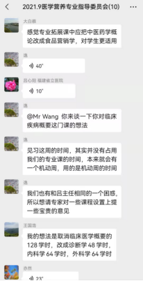 專家聽取了徐軼彥老師對目前醫(yī)學營養(yǎng)專業(yè)人才培養(yǎng)方案存在問題的匯報,就修改完善醫(yī)學營養(yǎng)專業(yè)人才培養(yǎng)方案為主題的研討展開了熱烈的討論,各位專家及老師提出了很多寶貴的意見及建議,并達成共識。