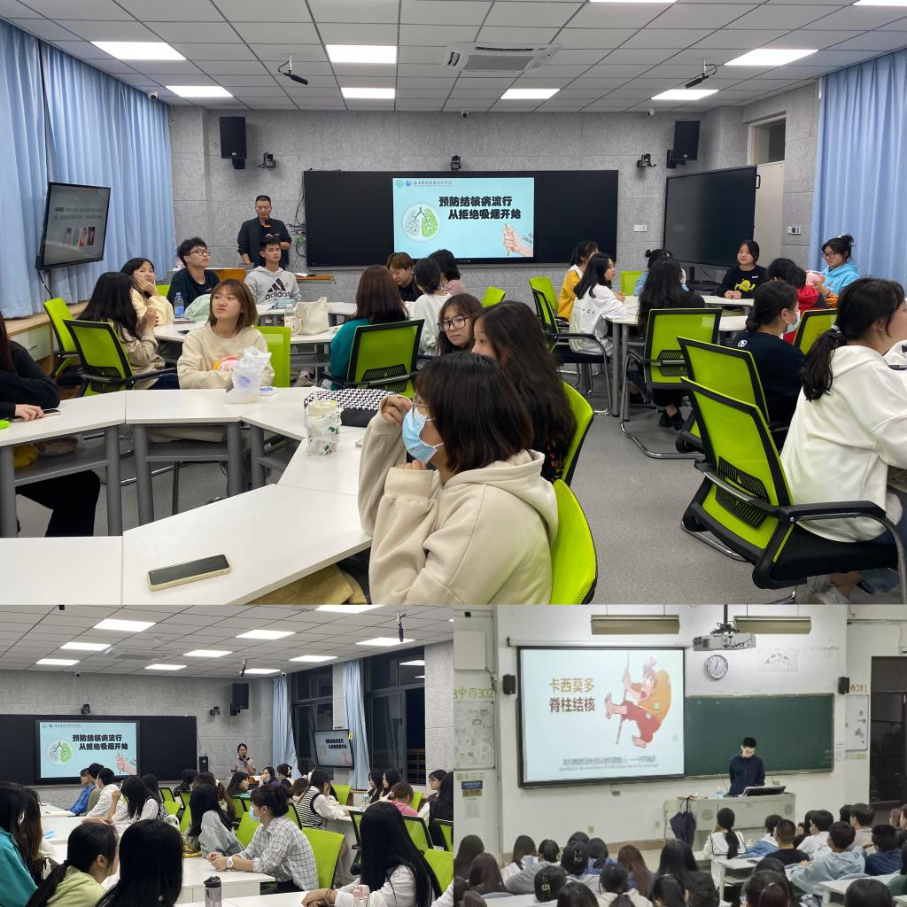 主題班會(huì)10月31日,為了增強(qiáng)學(xué)生預(yù)防結(jié)核病及控?zé)煹囊庾R(shí),結(jié)核病防治志愿服務(wù)隊(duì)邀請(qǐng)輔導(dǎo)員們開(kāi)展了“預(yù)防結(jié)核流行,從拒絕吸煙開(kāi)始”主題班會(huì)活動(dòng)。主題班會(huì)首先由輔導(dǎo)員向班上同學(xué)科普結(jié)核病及控?zé)熛嚓P(guān)知識(shí),科普過(guò)程中輔導(dǎo)員采取了問(wèn)題搶答、知識(shí)競(jìng)答、小組討論等形式增加了同學(xué)的參與性及互動(dòng)性,從而提高健康科普傳播效果。活動(dòng)期間,同學(xué)們積極踴躍,熱情高漲,在輔導(dǎo)員的帶領(lǐng)下,加深了對(duì)結(jié)核病的認(rèn)識(shí),充分認(rèn)識(shí)到吸煙的危害,進(jìn)一步增強(qiáng)了健康生活意識(shí),達(dá)到了很好的宣傳效果。