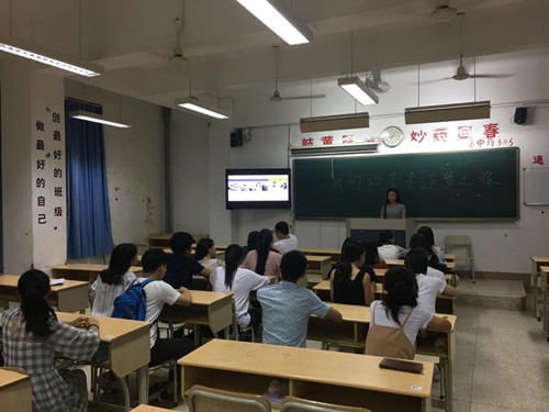 管理系團總支組織委員陳鉆強同學到16美容301班進行宣講。