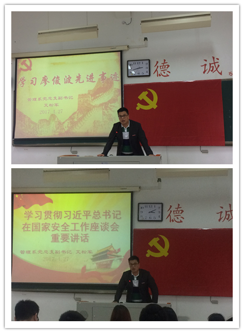 會后,艾松軍副書記為學員們開講了第一黨課,就《學習廖俊波先進事跡》和《學習貫徹習近平總書記在國家安全工作座談會重要講話》兩個專題進行深入分享學習。