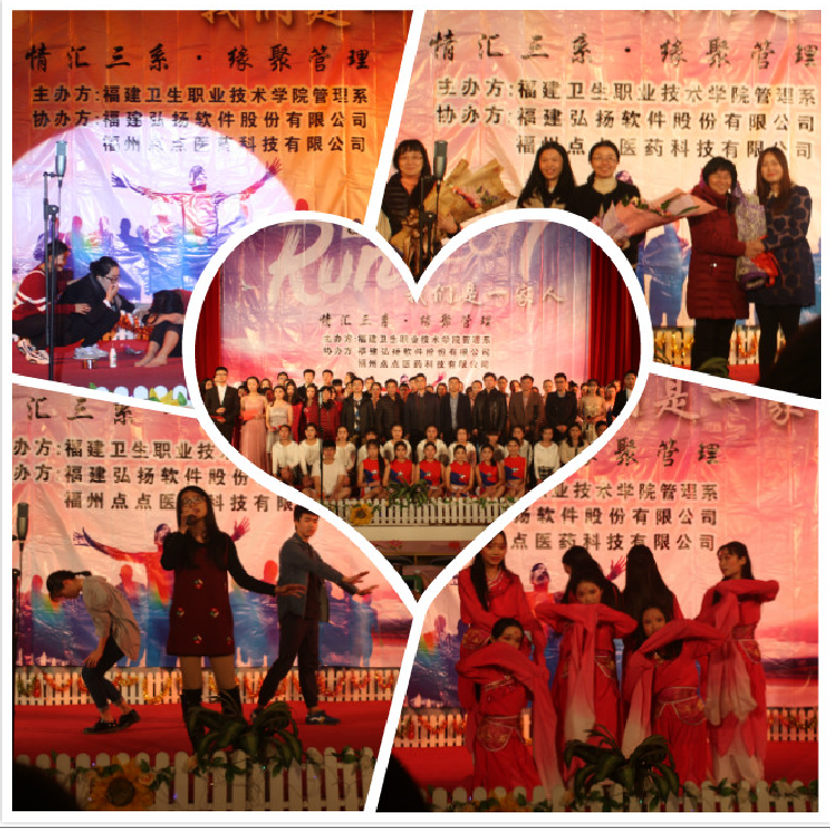 12月29日晚,管理系在學(xué)術(shù)廳舉辦“情匯三系·緣聚管理”主題晚會。學(xué)院魏立娜副院長、辦公室鄭力宏主任、后勤管理處王屏處長、院黨委工作部宋維副部長、學(xué)生工作處葉海處長、團(tuán)委林穎峰副書記、保衛(wèi)處葉文偉副處長、藥學(xué)系黨總支蘇愛華書記、護(hù)理系黨總支謝濤書記、醫(yī)學(xué)技術(shù)系黨總支黃銘珊書記、公共基礎(chǔ)部黨總支熊美蘭書記、臨床醫(yī)學(xué)系黨總支邱滾忠副書記、護(hù)理系黨總支龔海蓉副書記及管理系黨政領(lǐng)導(dǎo)、全體教職工出席本次晚會。