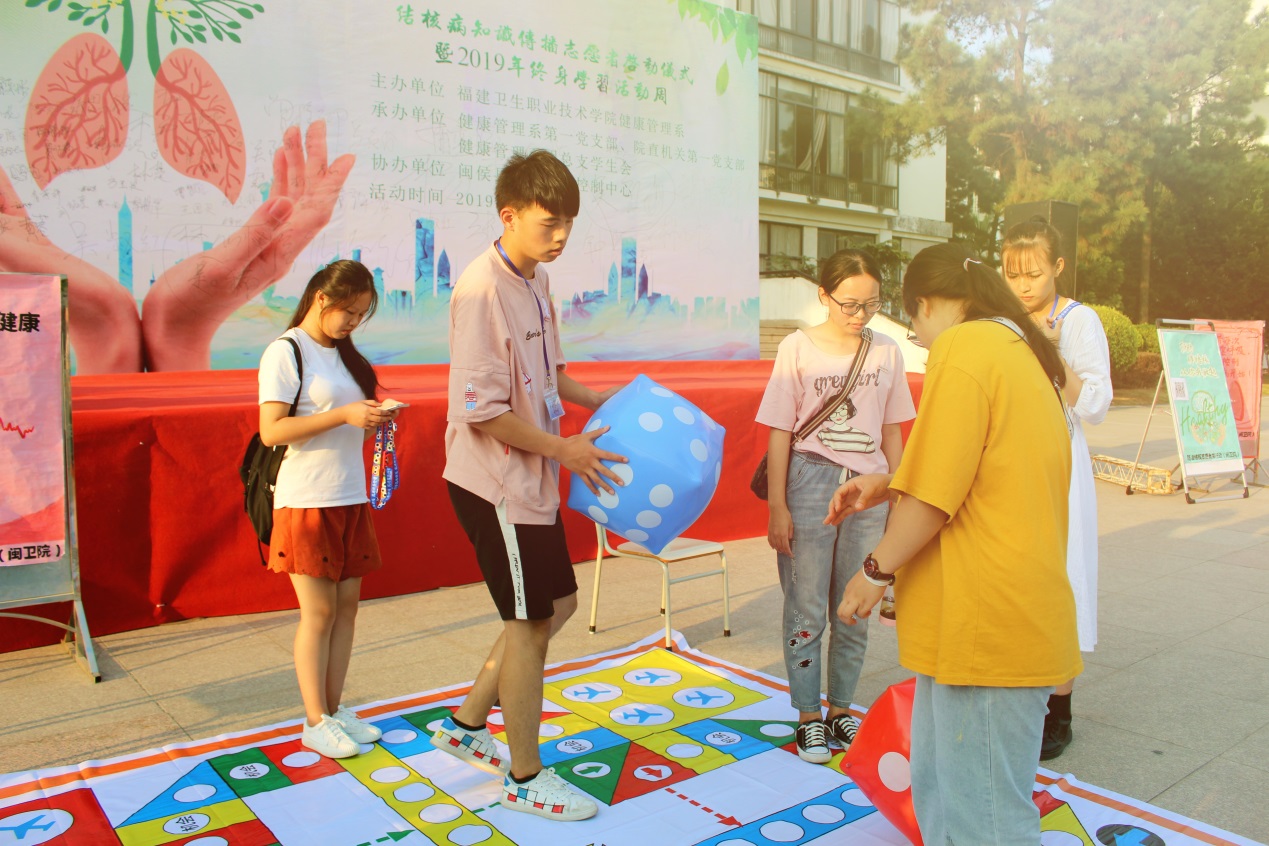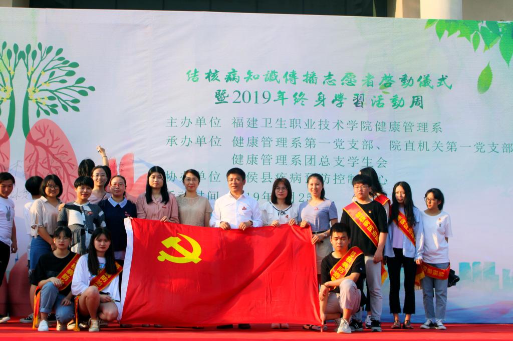 2019年9月25日,由健康管理系主辦,管理系第一黨支部、院直機(jī)關(guān)第一黨支部、健康管理系團(tuán)總支承辦的“志愿者結(jié)核病防治知識(shí)傳播啟動(dòng)儀式暨2019年終身學(xué)習(xí)活動(dòng)周”在福建衛(wèi)生職業(yè)技術(shù)學(xué)院圖書館廣場(chǎng)舉行。此次活動(dòng)是根據(jù)福建省終身教育促進(jìn)委員會(huì)關(guān)于開展2019年“9?28終身教育活動(dòng)日”暨全民終身學(xué)習(xí)活動(dòng)周的通知精神并響應(yīng)福建省衛(wèi)生計(jì)生委推動(dòng)結(jié)核病防治知識(shí)傳播活動(dòng)的號(hào)召,在學(xué)校組建結(jié)核病防治宣傳活動(dòng)志愿團(tuán)隊(duì),發(fā)揮學(xué)生專業(yè)技能,推進(jìn)健康中國(guó)建設(shè),大力提高國(guó)民素質(zhì),并提高學(xué)生為人群健康服務(wù)的意識(shí)和決心?;顒?dòng)得到了閩侯縣CDC的大力支持,閩侯縣疾控中心江仁銜主任、福建省疾病預(yù)防控制中心黃智忠副主任醫(yī)師、院團(tuán)委黃曦書記、健康管理系黨政負(fù)責(zé)人等參加活動(dòng)。