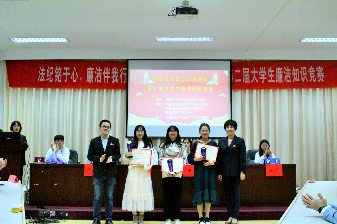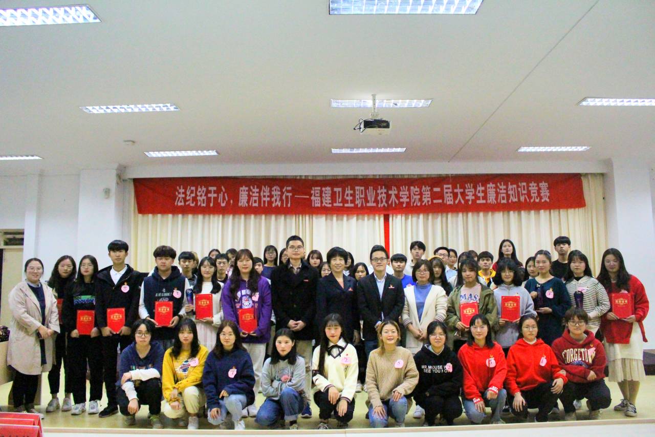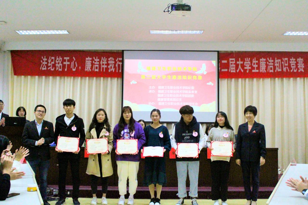 為深入弘揚廉潔文化,普及廉潔知識,永葆廉潔自律之心,揚青年正氣,樹廉潔新風。在12月9日“國際反腐敗日”來臨之際,由學院紀委、團委主辦、健康管理系團總支承辦的第二屆大學生廉潔知識競賽于11月28日下午6:30在行政樓六樓會議室舉行。比賽特邀學院紀委副書記、紀檢監(jiān)察室主任程劍芬老師、院團委書記黃曦老師、紀檢監(jiān)察室楊金城老師擔任評委及指導。蒞臨活動現場的還有:護理系團總支書記李寶珠老師、團總支副書記林飛準老師、團總支副書記張龍老師、藥學系團總支副書記胡丹老師、醫(yī)學技術系團總支書記曾慶才老師、臨床醫(yī)學系團總支書記陳清清老師、健康管理系團總支書記馮瑞華老師、健康管理系團總支副書記趙茜老師。
