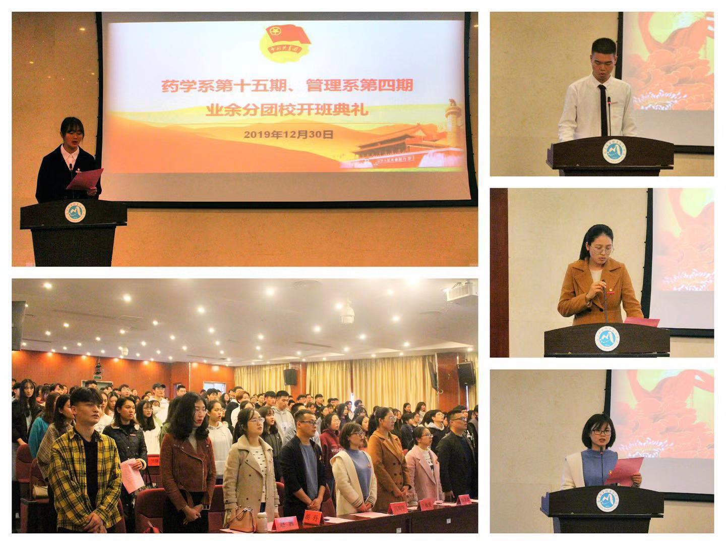 2019年12月30日,藥學(xué)系第十五期、管理系第四期業(yè)余分團(tuán)校培訓(xùn)班開班儀式在實(shí)訓(xùn)樓四樓會(huì)議室舉行。兩系團(tuán)總支書記、副書記和各輔導(dǎo)員老師,及兩系各團(tuán)總支委員和182名學(xué)員參加開班儀式。管理系黨總支艾松軍書記,藥學(xué)系黨總支賴文金副書記出席本次活動(dòng)。