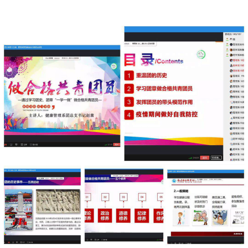 下午四點整,團課培訓正式開始,本次團課由健康管理系團總支書記趙茜老師主講,主題為“做一名合格的共青團員”。首先趙茜老師帶領全體學員重溫團的歷史,解讀團章團史,增強了學員們對黨、團的了解和認識,明確了當代青年的使命和職責。緊接著,從“七個方面”為學員們深入講解如何發(fā)揮團員的帶頭模范作用,最后,趙茜老師分別從錯峰返校、錯峰上課、錯峰就餐與宿舍和個人衣物等方面向學員們普及了開學后該如何正確做好自我防控。