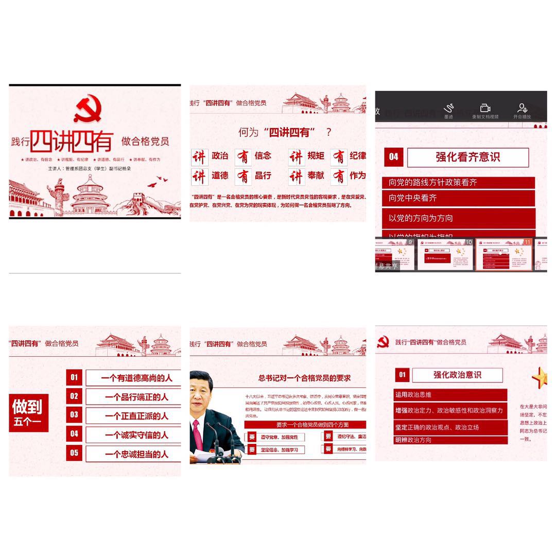 那么,作為當代大學(xué)生應(yīng)怎樣做到“四講四有”呢?楊朵同學(xué)在循序漸進的引導(dǎo)下將其概括為八字方針:“基礎(chǔ)在學(xué),關(guān)鍵在做”,啟發(fā)學(xué)員們要牢固樹立“四個看齊”意識,不越雷池一步,不碰紅線一下,自覺踐行社會主義核心價值觀,直覺投身工作一線。最后,楊朵同學(xué)帶領(lǐng)學(xué)員們深入貫徹學(xué)習(xí)了習(xí)近平總書記系列重要講話的實踐要求,引導(dǎo)黨員們遵守黨章的模范,堅定理想信念,堅持正確政治方向,遵紀守法,廉潔正派,以嚴格標準加強自律,向榜樣學(xué)習(xí)。用心把黨團組織交辦的每項工作做好做細,努力在促進學(xué)習(xí)工作創(chuàng)新發(fā)展中當標兵、作模范。