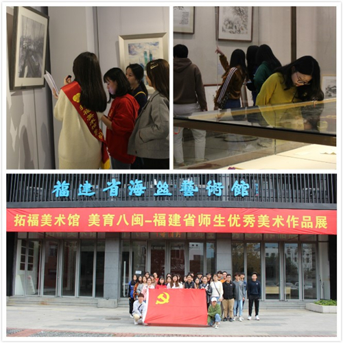 為進一步貫徹落實習近平新時代中國特色社會主義思想,喜迎2019全國兩會勝利召開,引領廣大師生深入感受美育改革的“溫度”、“力度”和“獲得感”。3月31日,管理系教工黨支部開展“藝海泛舟,同心筑夢”主題黨日活動,組織17、18級入黨積極分子赴福建省海絲藝術館參觀福建省師生優(yōu)秀美術作品展。