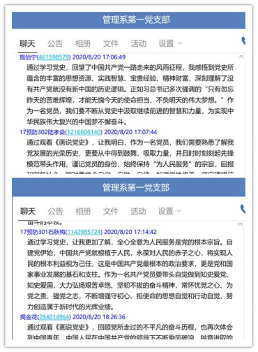 2020年8月20日,管理系第一黨支部通過觀看新聞、視頻的形式組織全體黨員在線學習黨史。