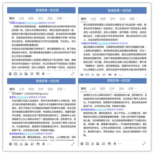 觀看后,大家紛紛發(fā)表感想。夏雪梅老師表示,在這場看不見敵人的戰(zhàn)疫中,有許許多多的青年人沖鋒在前。有竭盡全力救治患者的青年醫(yī)生;有騎行4天3夜輾轉300多公里返崗的青年女醫(yī)生;有忙于防疫工作無暇顧及待哺孩子的青年女城管;有主動請纓到方艙醫(yī)院巡邏的青年女民警;有兢兢業(yè)業(yè)排查登記、測量體溫的青年志愿者;有加班加點生產(chǎn)醫(yī)藥物資的青年員工,無數(shù)青年人紛紛化身鋼鐵衛(wèi)士為人民群眾構筑了一道堅固的防火墻,把積極作為、慎終如始的責任與擔當精神發(fā)揮得淋漓盡致,充分彰顯了青年人的價值取向。作為教師黨員,我想我不僅需要向他們學習,更應該將這種精神延續(xù)下去,讓學生樹立正確、積極的價值觀。蘇碧鳳老師表示,建設積極心理,懂得自娛自樂,安心于學業(yè)。人心惶惶之際,保持一顆安定樂觀的心無疑是最重要的事情,打敗人的可能并不是病魔,而是心魔,當你郁郁寡歡之時,自己的免疫系統(tǒng)便免不了也隨你的心情,而消極一番,病毒便可趁虛而入。作為教師黨員的我們,更應該重視學生的學業(yè),讓學生自律做好功課。心里懷著為自己和中國的明天,更加努力奮斗,爭取為國出一份力,做出自己能做到的一份貢獻。預備黨員高正茹同學表示,關鍵時刻任務越是險重,就越需要黨員主動當先鋒作表率沖在救死扶傷第一線。在此次新冠疫情的災難考驗下,我們更能看到人性,除了那些個別的自私與卑劣,我們看到更多的是醫(yī)護人員白衣執(zhí)甲和共產(chǎn)黨員身先士卒的大無畏精神。我才知道在那些醫(yī)務人員選擇從事醫(yī)生這個職業(yè)的那一刻起,健康所系性命所托是她們一生的信仰,成為一名光榮黨員,為人民服務,就不再是一句空話。這些應該給我們啟示,讓我們這些大學生黨員去思考,我們應該成為什么樣的人,又應該承擔怎樣的責任和使命?預備黨員陳思思同學表示,通過觀看此次微黨課,讓我感受到了政府與國家的力量,以及人民群眾的凝聚力。我深知現(xiàn)在是抗擊疫情的關鍵時期,作為一名學生黨員,此時此刻我們不能放松警惕,更應當發(fā)揮黨員模范作用,積極響應國家號召,為接下來的疫情防控做自己力所能及的事情,貢獻自己的一份力量。同時必須樹立站穩(wěn)人民立場的意識,勇于承擔起“啃硬骨頭”的責任,面對困難挑戰(zhàn),既要向科學尋方法,又要有胸懷向上求善的人文關懷,堅持為實現(xiàn)中華民族偉大復興的中國夢而不懈奮斗。