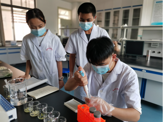 食品質(zhì)量檢測小組對兩個食堂的餐飲衛(wèi)生進(jìn)行督查,并隨機(jī)抽取第一食堂當(dāng)日采購且切洗浸泡后的空心菜、大白菜、秋葵、豆角等蔬菜,隨機(jī)抽取第二食堂當(dāng)日采購且切洗浸泡后的茄子、油麥菜、玉米、小白菜等蔬菜,隨機(jī)抽取5份食堂正在使用的食用油,采用酶抑制率法檢測蔬菜中的農(nóng)藥殘留、食用油酸價和過氧化值。檢測工作在管理系安全性評價實訓(xùn)室開展,由黨員教師揭金花、李丹及預(yù)防醫(yī)學(xué)專業(yè)學(xué)生入黨積極分子共同完成。
