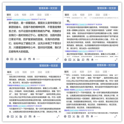 2020年9月17日,管理系第一黨支部通過觀看新聞、視頻的形式組織全體黨員在線學習新中國史。