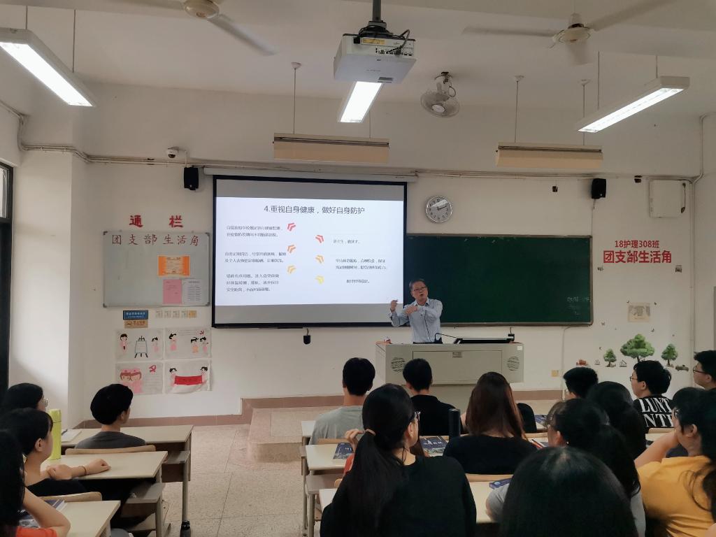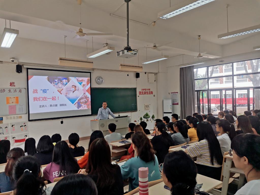 9月22日上午,學(xué)院領(lǐng)導(dǎo)在教學(xué)樓115為學(xué)生講授返校第一課《戰(zhàn)疫,我們?cè)谝黄稹?。本次返校第一課由黨委委員、副院長(zhǎng)陳貞健主講,管理系2019級(jí)健康管理專業(yè)學(xué)生參加現(xiàn)場(chǎng)授課。