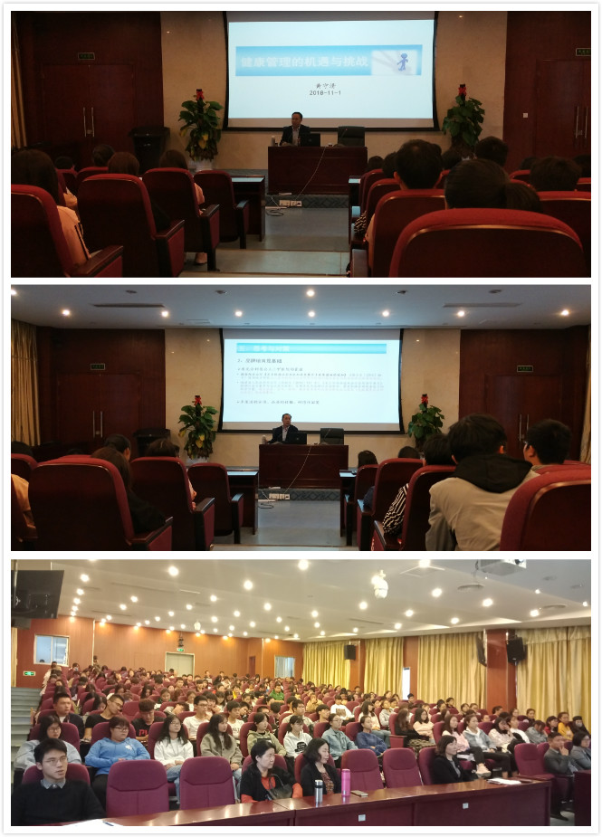 講座上,黃守清博士為我們介紹了什么是健康管理,政策和群眾需求對健康管理的積極影響以及健康管理存在的問題與解決方案等,同時也對健康管理相關(guān)學科發(fā)展和專業(yè)人才的培養(yǎng)提出了新的要求。這使得同學們更加了解健康管理這個專業(yè),更加意識到國家對于健康管理相關(guān)人才的需求,以及健康管理廣闊的就業(yè)前景。同時也使老師們認識到培養(yǎng)優(yōu)秀健康管理專業(yè)學生的迫切需求,并在今后要做好學科與企業(yè)更好的融合,推動健康產(chǎn)業(yè)的積極發(fā)展。