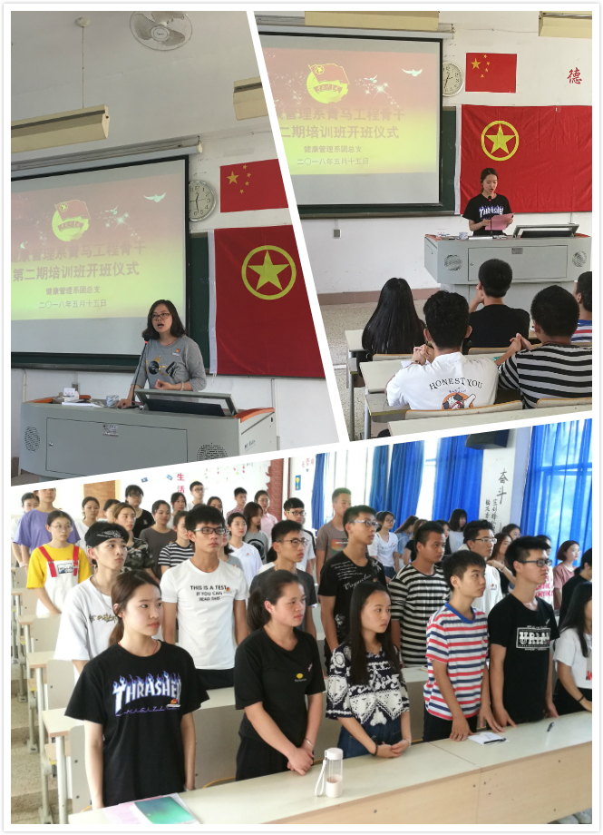 為貫徹落實團中央《“青年馬克思主義者”培養(yǎng)工程實施綱要》文件精神,在我系青年學生中著力培養(yǎng)造就一批用馬克思主義中國化的最新成果武裝的馬克思主義者,引導當代青年成長為中國特色社會主義事業(yè)的合格建設者和可靠接班人,不斷提高我系青年學生的思想政治素養(yǎng)、理論水平、創(chuàng)新能力和實踐能力,培養(yǎng)打造一支創(chuàng)新意識強、政治理論水平高、工作能力突出的學生干部隊伍。5月14日,健康管理系“青馬工程”學生骨干暨班團干部培訓班開班儀式在教學樓314召開。健康管理系團總支書記邱麟老師、團總支副書記馮瑞華老師及17級團學干部和17級各班班團干部參加本次開班儀式。