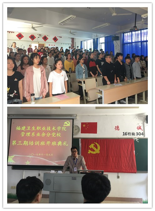 11月9日下午,管理系在教學樓314教隆重舉行第三期業(yè)余分黨校培訓班開班典禮。管理系黨總支副書記艾松軍,黨總支紀檢委員陳盛蘭,黨總支組織委員、學生黨支部書記揭金花,教工黨支部書記、團總支書記邱麟,學生黨支部組織委員李丹,團總支副書記馮瑞華,輔導員詹燕婷以及系團學干部、入黨積極分子及部分先進分子參加了開班典禮。