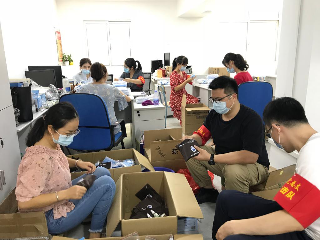老師們齊心協(xié)力準(zhǔn)備防疫物資