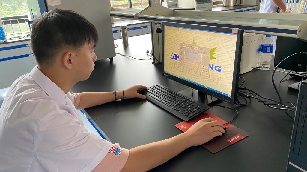 隨機(jī)抽樣,科學(xué)檢測。食品質(zhì)量檢測小組隨機(jī)抽取明湖食堂當(dāng)日采購且切洗浸泡后的蔬菜包括上海青、秋葵、花菜、葫蘆、豆芽、黃瓜、甜豆等,隨機(jī)抽取2份食堂正在使用及儲存的食用油,采用酶抑制率法檢測蔬菜中的農(nóng)藥殘留、用快速檢測法測定食用油酸價和過氧化值,檢測工作在管理系安全性評價實訓(xùn)室開展。