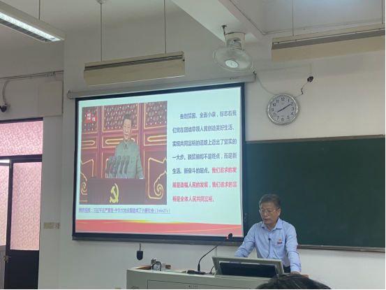 為深入學習習近平總書記關(guān)于共同富裕的系列重要論述,激勵青年大學生扛起守好“紅色根脈”的時代責任,2022年4月14日上午,在教學樓110,副校長陳貞健為健康管理系學生講授“開學第一課”。
