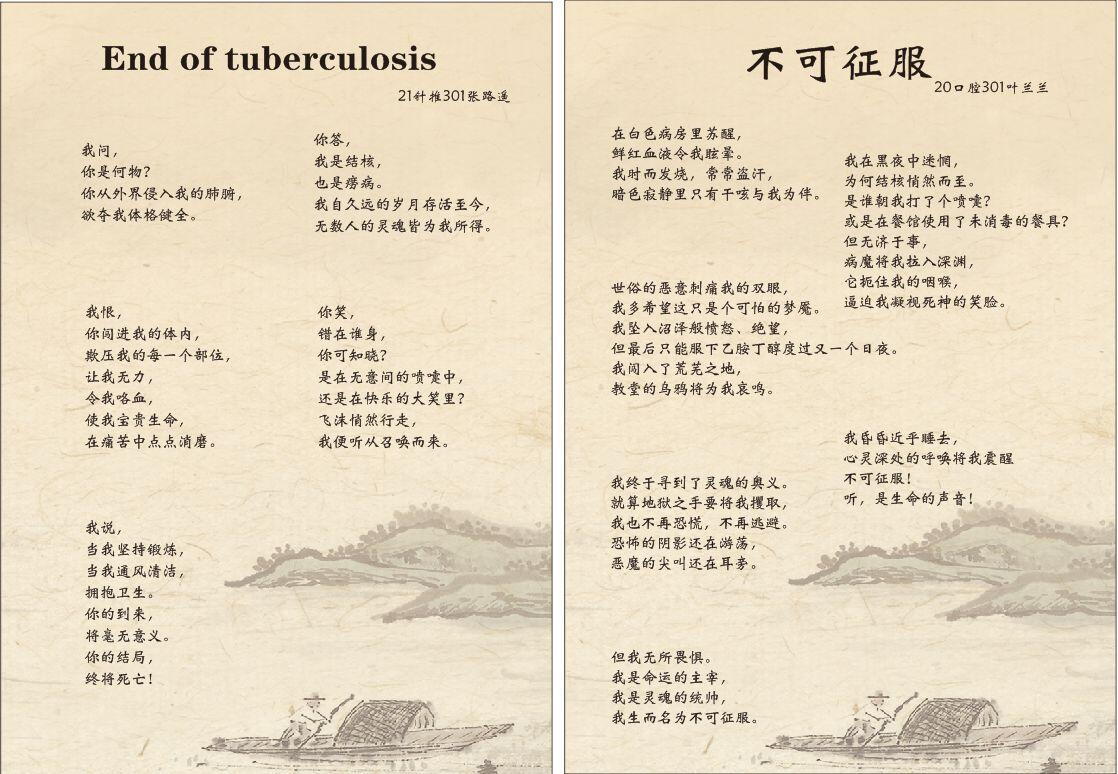 本次征集活動進(jìn)一步增強(qiáng)了學(xué)生對肺結(jié)核病危害的認(rèn)識,積極有效預(yù)防肺結(jié)核病,豐富學(xué)生校園文化生活。征集作品包括結(jié)核病手工藝品、手繪漫畫、文字作品類、海報、展板、結(jié)核病宣傳手冊等?;顒訂雍?,學(xué)生圍繞活動主題積極參與創(chuàng)造和投稿,共收到120余件投稿作品。