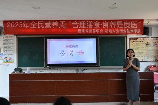 為貫徹落實(shí)《健康中國行動(dòng)(2019-2030年)》、《國民營養(yǎng)計(jì)劃(2017-2030 年)》和《教育部等十部門關(guān)于做好2023年職業(yè)教育活動(dòng)周相關(guān)工作的通知》,鼓勵(lì)居民合理搭配日常膳食,養(yǎng)成良好飲食習(xí)慣,同時(shí)進(jìn)一步在社會(huì)營造關(guān)心支持職業(yè)教育改革發(fā)展的良好氛圍,5月18-19日,健康管理系醫(yī)學(xué)營養(yǎng)教研室攜手管理系第二黨支部、繼續(xù)教育學(xué)院前往閩侯白沙中學(xué)小學(xué)、荊溪鎮(zhèn)大佳社區(qū)開展?fàn)I養(yǎng)宣教活動(dòng)。