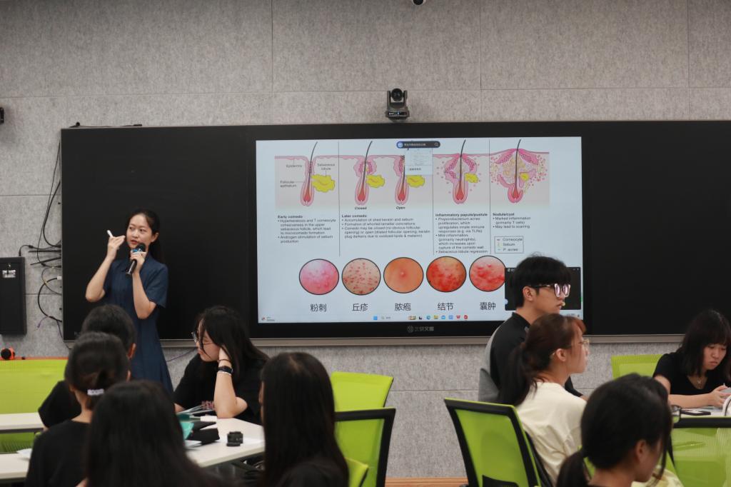 為貫徹落實“健康中國”戰(zhàn)略,9月28日上午,健康管理系第一黨支部與福州市中醫(yī)院第三黨支部在智慧教室共同舉辦了第六屆“中國痤瘡周”健康中國公益活動。此次活動由科普講座、專家義診兩部分組成。講座由福州市中醫(yī)院皮膚科張婧博士主講,全校師生代表參加。該講座指導公眾科學認識痤瘡,重視痤瘡的治療和護理,預防痤瘡的發(fā)生,提高當代大學生對身心健康的關注度。講座結束后,由福州市中醫(yī)院張婧、林秀敏醫(yī)生為有痤瘡困擾的師生展開中醫(yī)義診活動,有大批師生前往咨詢。本次黨日活動通過師生們感興趣的“痤瘡”話題,將中醫(yī)傳統(tǒng)文化的優(yōu)勢與特色通過講座的形式深深地播種到師生們的心里。讓中醫(yī)的診療手段、防治方法能夠?qū)嶋H應用于點點滴滴的生活中,做到入心入腦入生活。