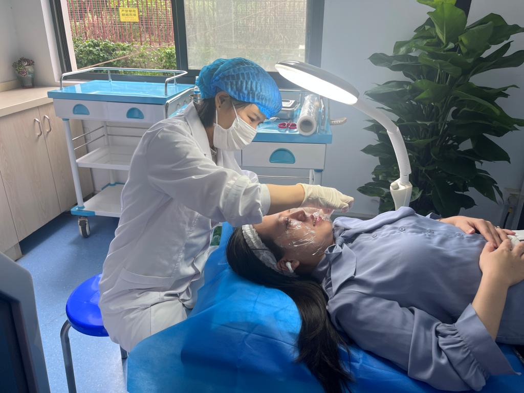 5月23日,在“5.25國際愛膚日”即將到來之際,本著為教職工服務的宗旨,我院醫(yī)學美容專業(yè)全體教師攜美容創(chuàng)新創(chuàng)業(yè)團隊成員聯合校工會、婦委會共同舉辦了一場面向全校教師的公益活動?;顒禹椖坑袑I(yè)皮膚檢測(VISIA)、光子嫩膚、紅藍光照射、舒敏護膚體驗和激光點疣等共5類,吸引了眾多老師前來體驗,收到一致好評。