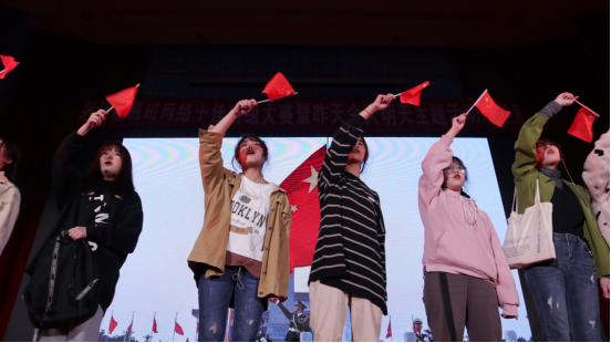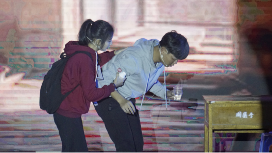 一場(chǎng)古色古香的開場(chǎng)舞蹈后,19健管302班精心準(zhǔn)備的《回望祖國(guó)》節(jié)目精彩上演,同學(xué)們以小品的形式表達(dá)了自己身為中國(guó)人的驕傲與自豪。