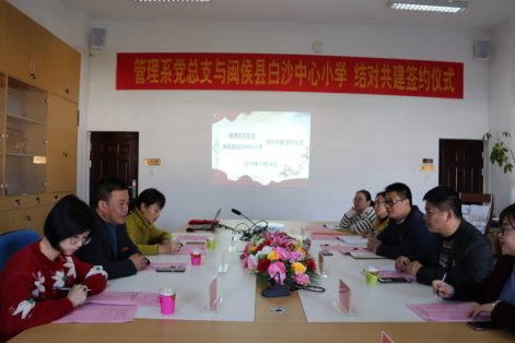 為推動城鄉(xiāng)教育均衡發(fā)展,服務(wù)鄉(xiāng)村振興戰(zhàn)略,助力脫貧攻堅,12月26日上午,管理系黨總支與白沙中心小學(xué)結(jié)對共建簽約儀式在管理系會議室舉行。白沙中心小學(xué)校長李維銓、副校長林昌芳、德育處主任陳秀金、德育處副主任夏林萍、學(xué)院黨委委員、陳貞健副校長、管理系黨總支書記艾松軍、管理系主任莊海林、管理系黨總支紀(jì)檢委員、辦公室主任李淼淼、管理系黨總支專職組織員張云霞、管理系黨總支宣傳委員、第一黨支部副書記揭金花、第二黨支部書記、團(tuán)總支書記馮瑞華、管理系團(tuán)總支副書記趙茜參加會議。會議由管理系黨總支書記艾松軍主持。