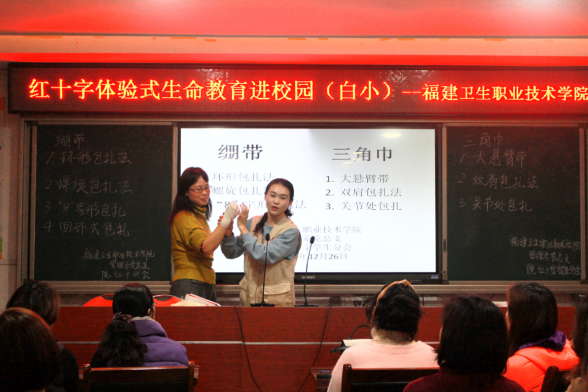 為提升中小學(xué)教師應(yīng)急救護(hù)知識(shí)的普及率,助力健康學(xué)校建設(shè),為學(xué)校師生生命安全和健康保駕護(hù)航,12月26日下午,管理系黨總支第二黨支部帶領(lǐng)系團(tuán)總支學(xué)生會(huì)、院紅十字學(xué)生分會(huì)赴白沙中心小學(xué)開展紅十字體驗(yàn)式生命教育進(jìn)校園主題黨日活動(dòng)。