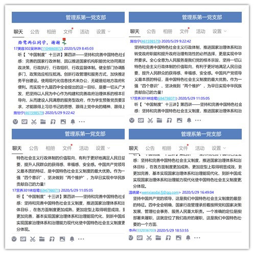 2020年5月29日,管理系第一黨支部全體黨員利用學(xué)習(xí)強(qiáng)國(guó)的聽(tīng)理論,在線進(jìn)行十九屆四中全會(huì)精神系列學(xué)習(xí),學(xué)習(xí)了中國(guó)制度十三講中的第四講。