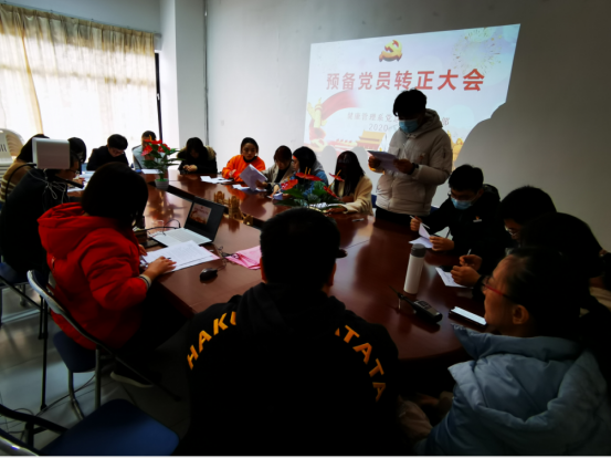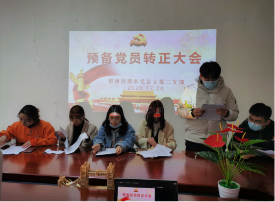 2020年12月24日下午,健康管理系黨總支第二支部在圖書館會議室召開預(yù)備黨員轉(zhuǎn)正大會。會議由支部書記馮瑞華同志主持,支部16名正式黨員同志及6名學(xué)生預(yù)備黨員參會。
