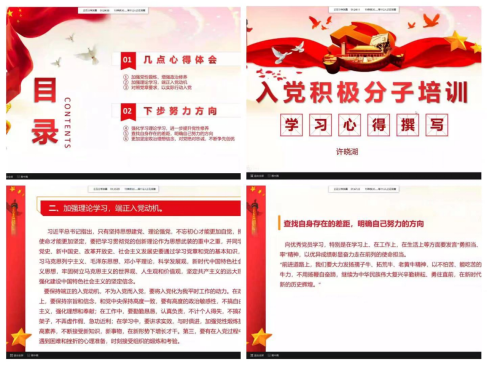隨后,許曉湖老師著重講解了入黨積極分子還要繼續(xù)強化理論學(xué)習(xí),進一步提升黨性修養(yǎng),更好地用習(xí)近平新時代中國特色社會主義思想武裝頭腦、指導(dǎo)實踐、推動工作。查找自身的差距明確方向,向優(yōu)秀黨員學(xué)習(xí),特別是在學(xué)習(xí)上,工作上等方面要發(fā)揮“勇?lián)?,作表率”的精神,以?yōu)異成績彰顯奮力走在時代前列的使命擔當。要更加堅定政治理想信念,對黨絕對忠誠,不斷爭先創(chuàng)優(yōu),把牢政治方向,永葆忠誠之心。