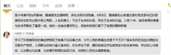 教師黨員吳晶表示,孫麗美同志身上體現(xiàn)了我黨關(guān)鍵時(shí)刻站得出來(lái)、危急關(guān)頭豁得出去的一貫品格。災(zāi)情面前,她毫不動(dòng)搖,不怕危險(xiǎn),將“對(duì)黨忠誠(chéng),積極工作,為共產(chǎn)主義奮斗終身,隨時(shí)準(zhǔn)備為黨和人民犧牲一切”的誓詞刻入骨髓直至生命最后時(shí)刻。我們要學(xué)習(xí)孫麗美堅(jiān)守初心、踐行宗旨的精神,在關(guān)鍵時(shí)刻,不退縮,不放棄,踐行共產(chǎn)黨員的使命擔(dān)當(dāng)。