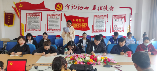 最后,健康管理系黨總支第一支部書記吳明同志做了大會(huì)總結(jié)發(fā)言,她在肯定發(fā)展對象優(yōu)點(diǎn)的同時(shí),也希望大家能夠時(shí)刻記住自己的黨員身份,牢記這個(gè)重要時(shí)刻,牢記自己的使命,樹立榜樣,向優(yōu)秀黨員同志學(xué)習(xí),起到模范帶頭作用,牢記初心,堅(jiān)定決心,爭取按期轉(zhuǎn)正。