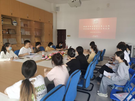 5月25日,健康管理系黨總支第三支部于圖書館五樓會議室召開接收預(yù)備黨員大會,會議就曾學(xué)華等6名發(fā)展對象入黨問題展開了充分討論,黨支部書記王開曄同志主持會議。