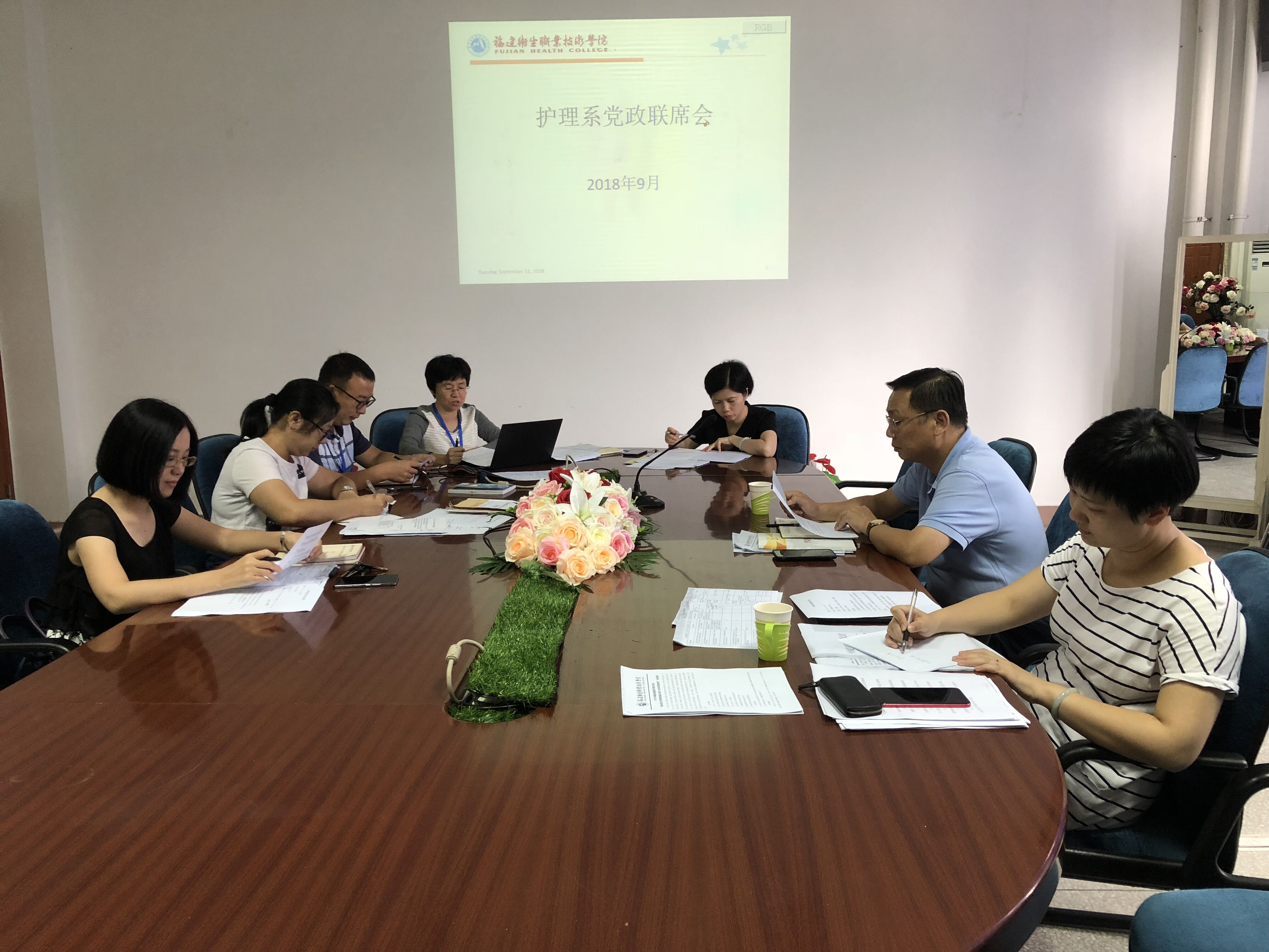 2018年9月11日,學院黨委曾武祈書記帶領黨委工作部吳華部長蒞臨我系開展調研督查工作,并列席參加了護理系的黨政聯(lián)席會。