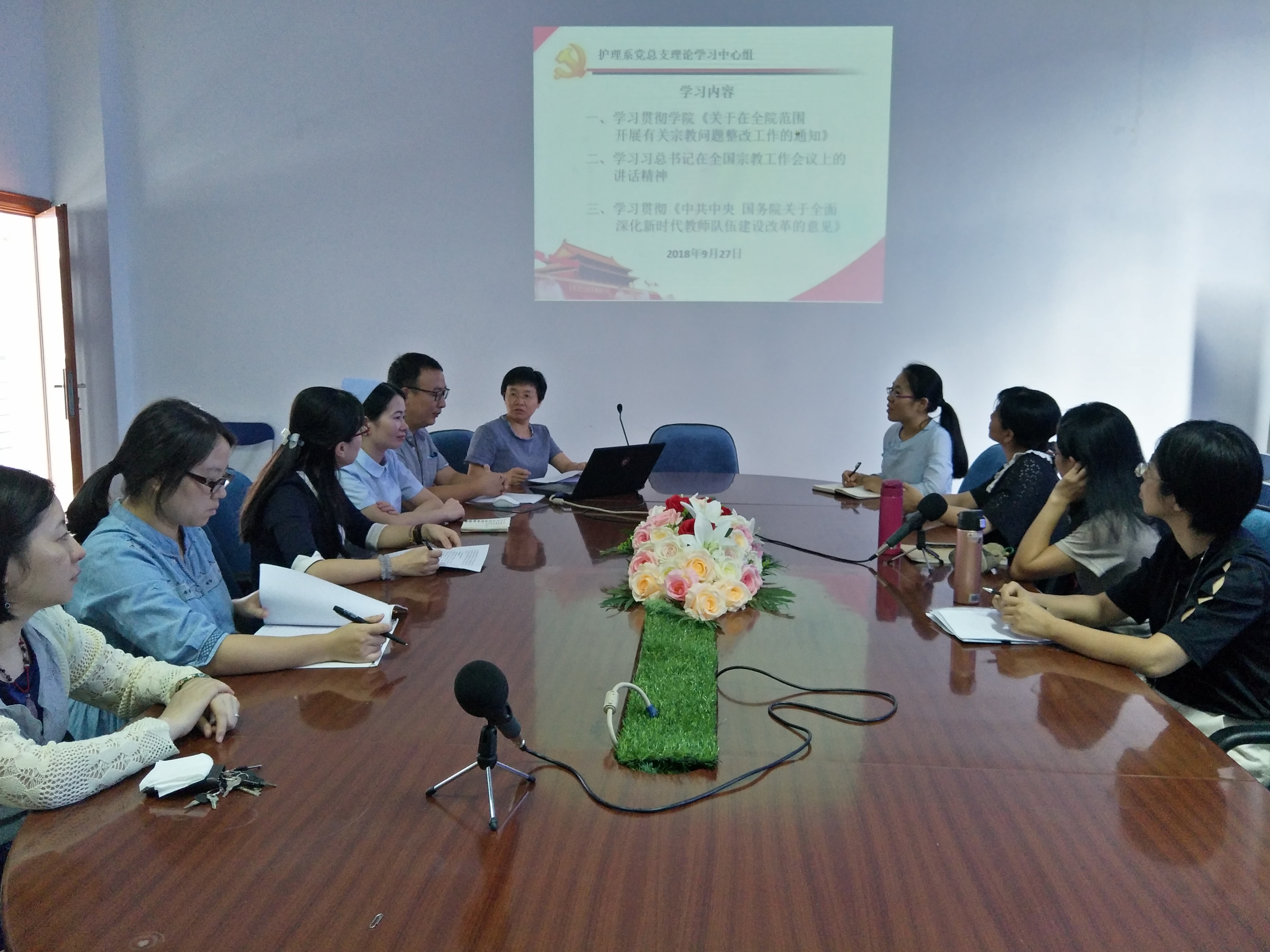 9月27日,護理系黨總支中心組在301會議室召開理論學習會議。護理系黨總支理論學習中心組成員等參加會議,黨總支謝濤書記主持會議。