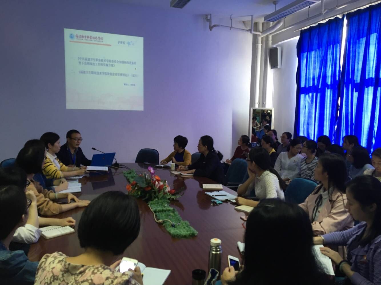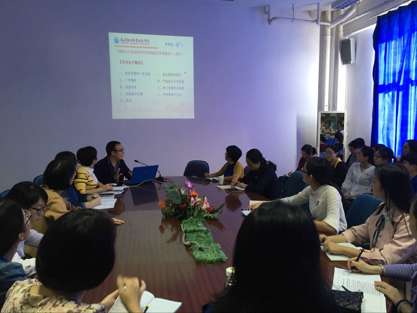 年11月9日,護理系在會議室召開系部大會,學(xué)習(xí)了《中共福建衛(wèi)生職業(yè)技術(shù)學(xué)院委員會加強和改進新形勢下思想政治工作的實施方案》和《福建衛(wèi)生職業(yè)技術(shù)學(xué)院效能建設(shè)管理規(guī)定》(試行),全體教職工及部分學(xué)生代表參加學(xué)習(xí)。